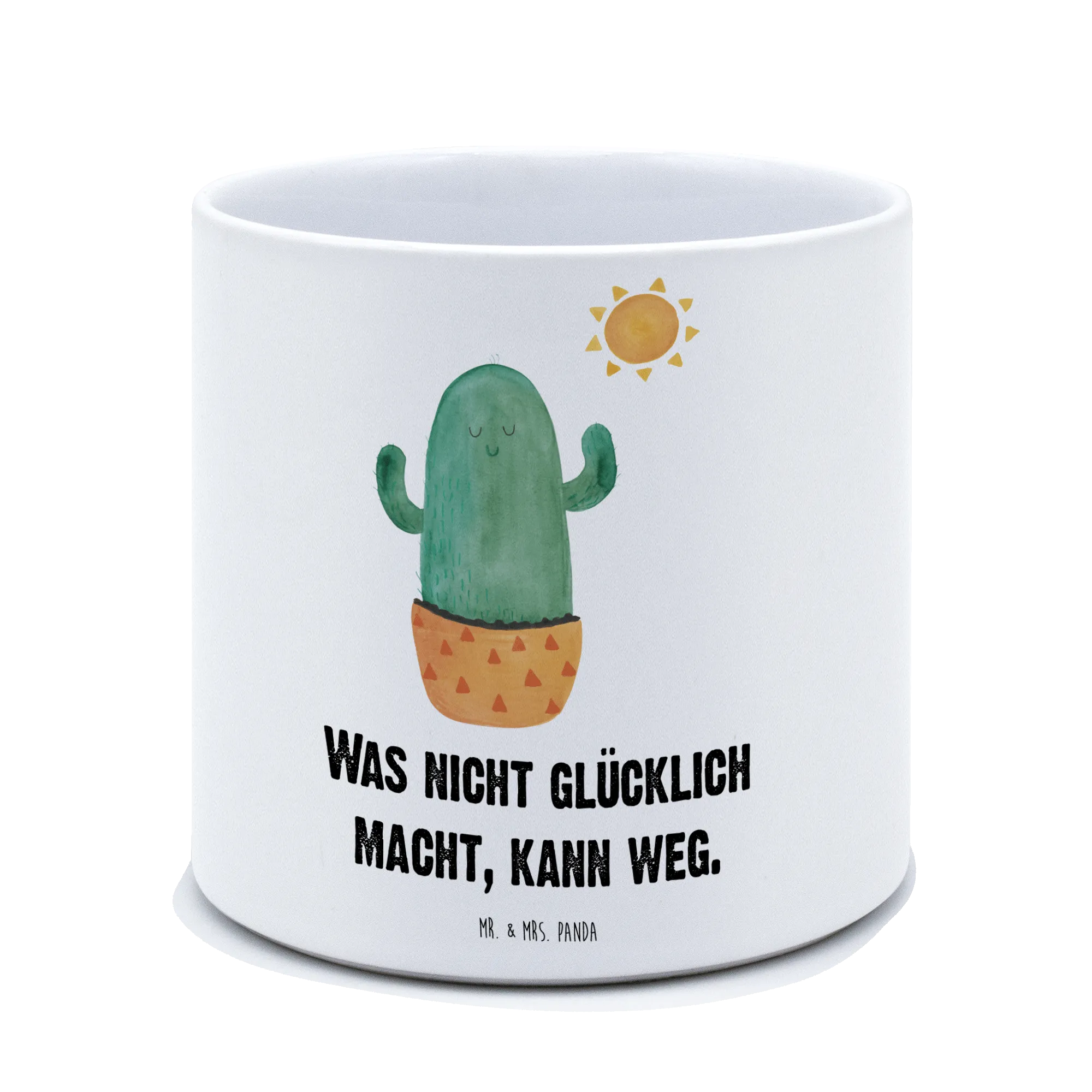 Der fröhlich gestaltete Kaktus im Aquarellstil strahlt eine positive Energie und Lebensfreude aus. "Was nicht glücklich macht, kann weg" – dieser Slogan bringt in jedem Zuhause ein Lächeln zum Vorschein. Besonders ist, dass dieser Blumentopf sowohl drinnen als auch draußen verwendet werden kann und somit ideal für Balkon, Terrasse, Garten oder Fensterbank geeignet ist.