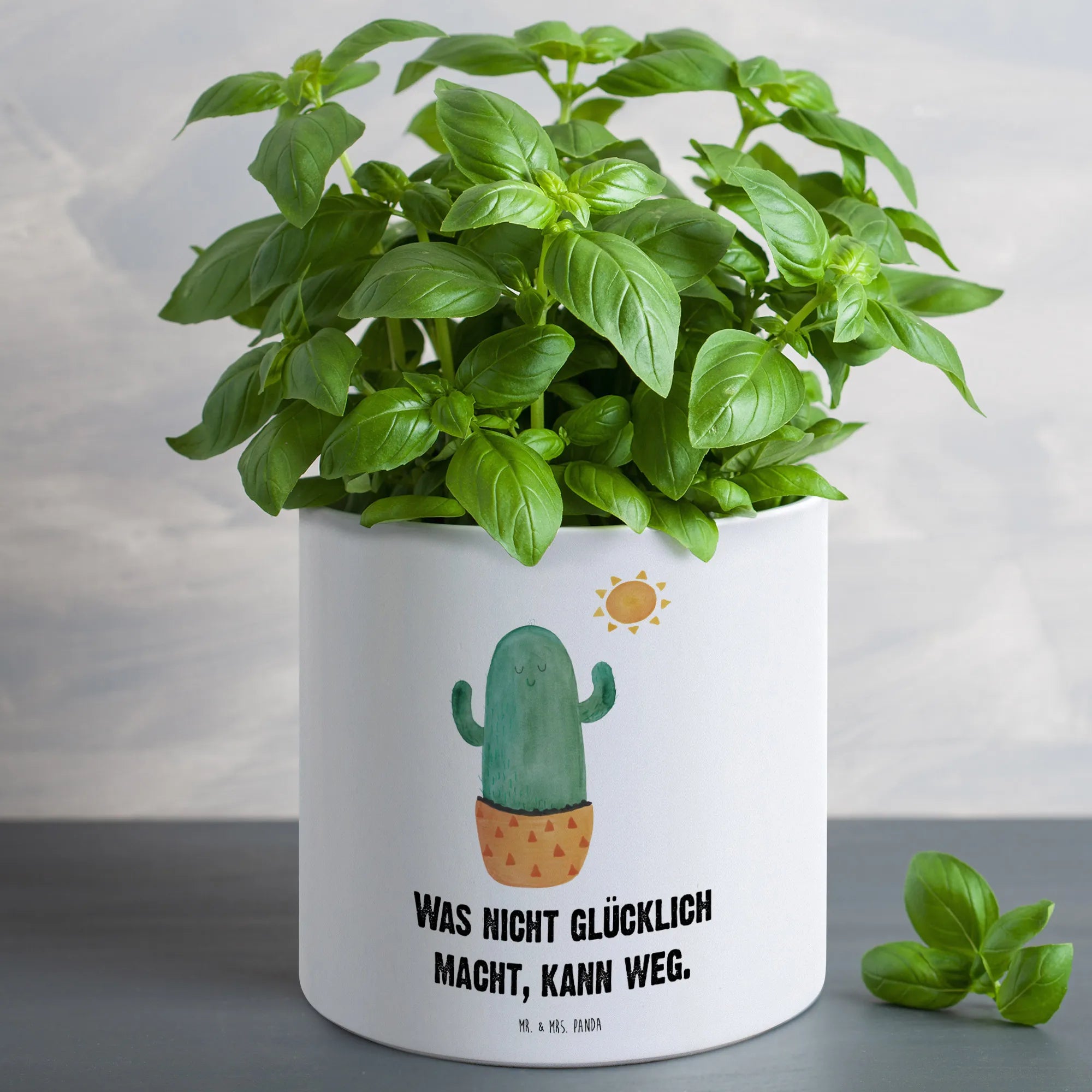 Der hochwertige Keramiktopf ist spülmaschinenfest und hat ein praktisches Entwässerungsloch, sodass du dir keine Sorgen über Staunässe machen musst. Jeder Kaktus in dieser Kollektion wird von Mrs. Panda liebevoll in Aquarell gemalt, und die fröhlichen Motive bringen ein Lächeln in jeden Raum. Ob als Geschenk zum Geburtstag, zu einem Neustart im Leben oder als kleine Aufmunterung für jemanden, der Liebeskummer hat – dieser Pflanzkübel ist die ideale Wahl.
