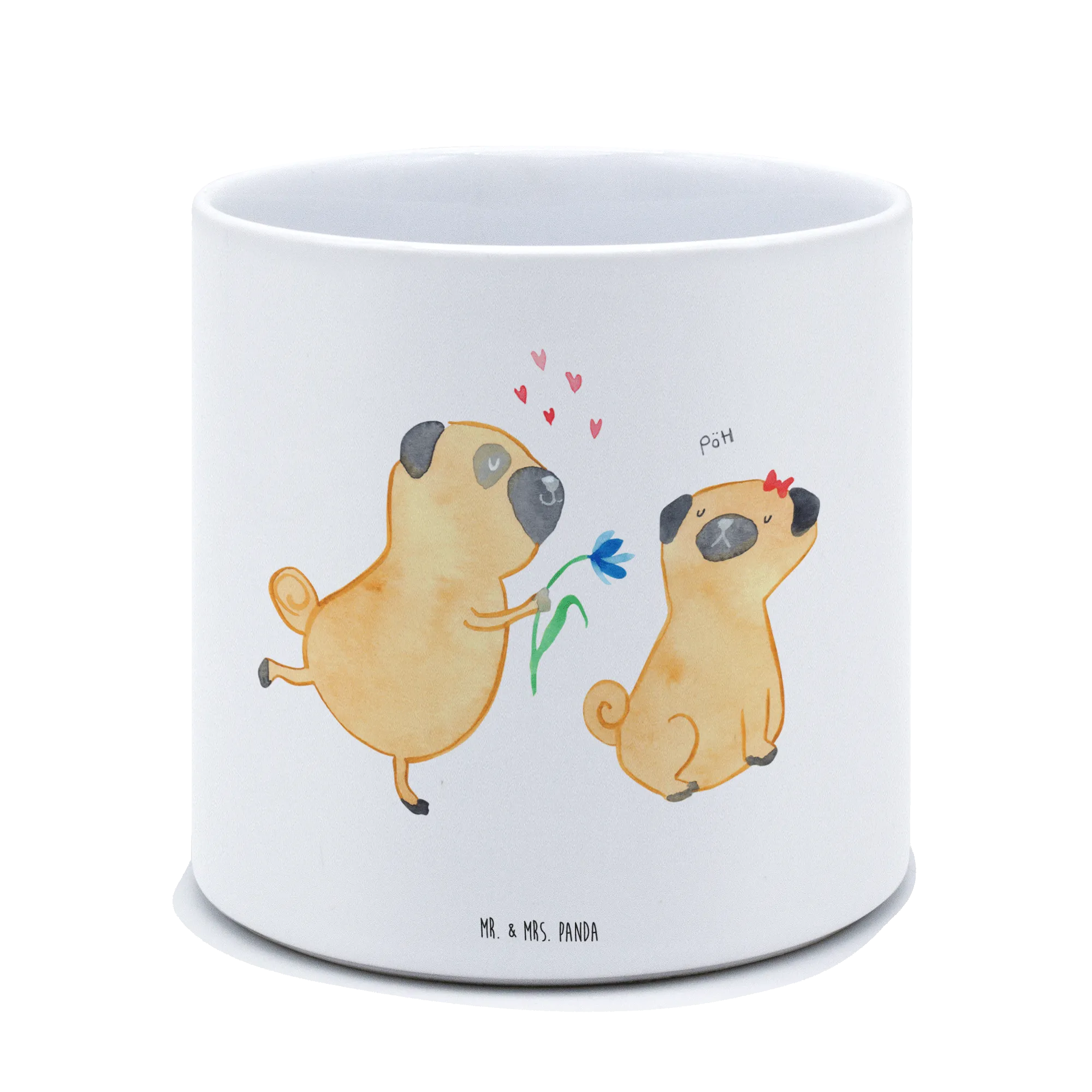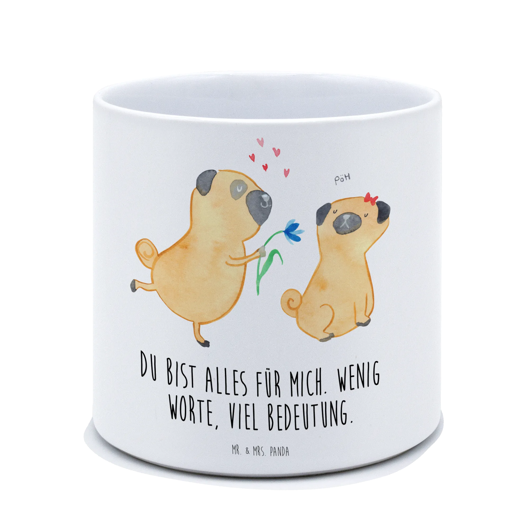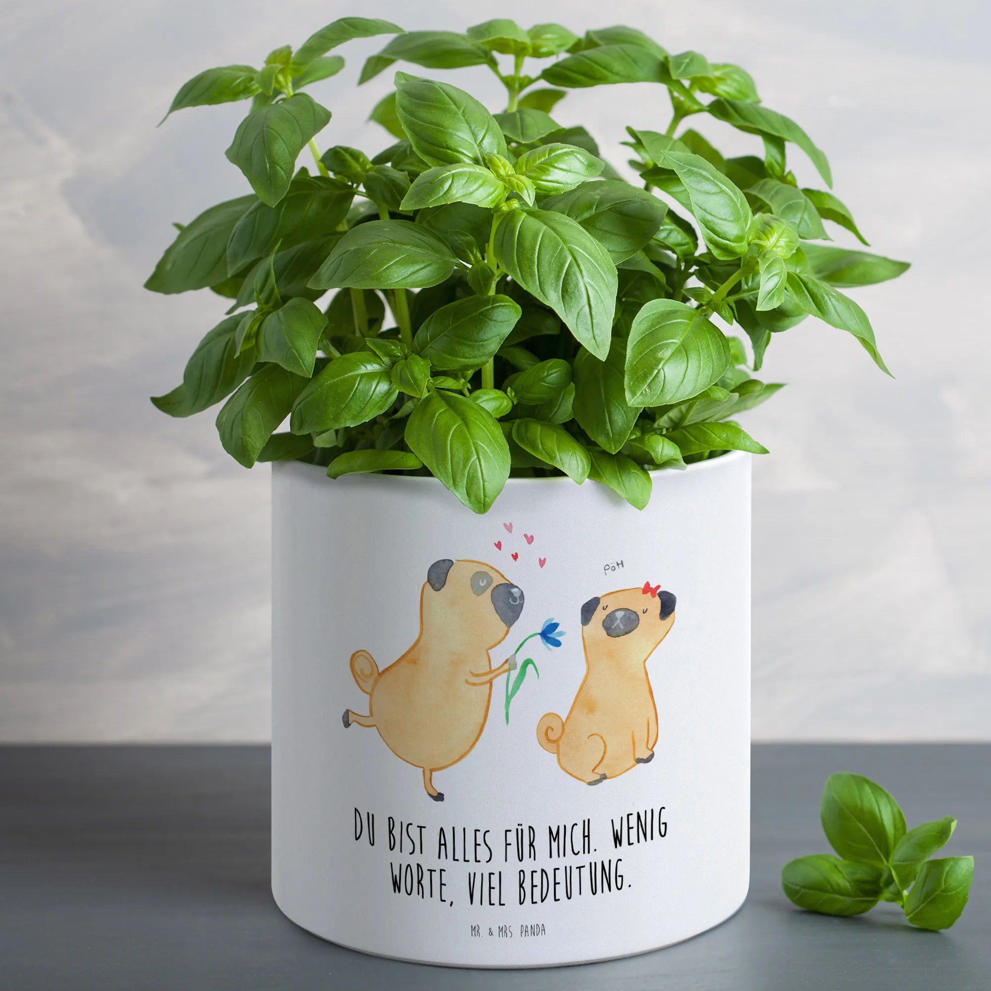 Der XL Blumentopf "Mops verliebt" von Mr. & Mrs. Panda ist nicht nur ein wunderschönes Deko-Element, sondern auch das perfekte Geschenk für alle Hundeliebhaber und Tierfreunde.
