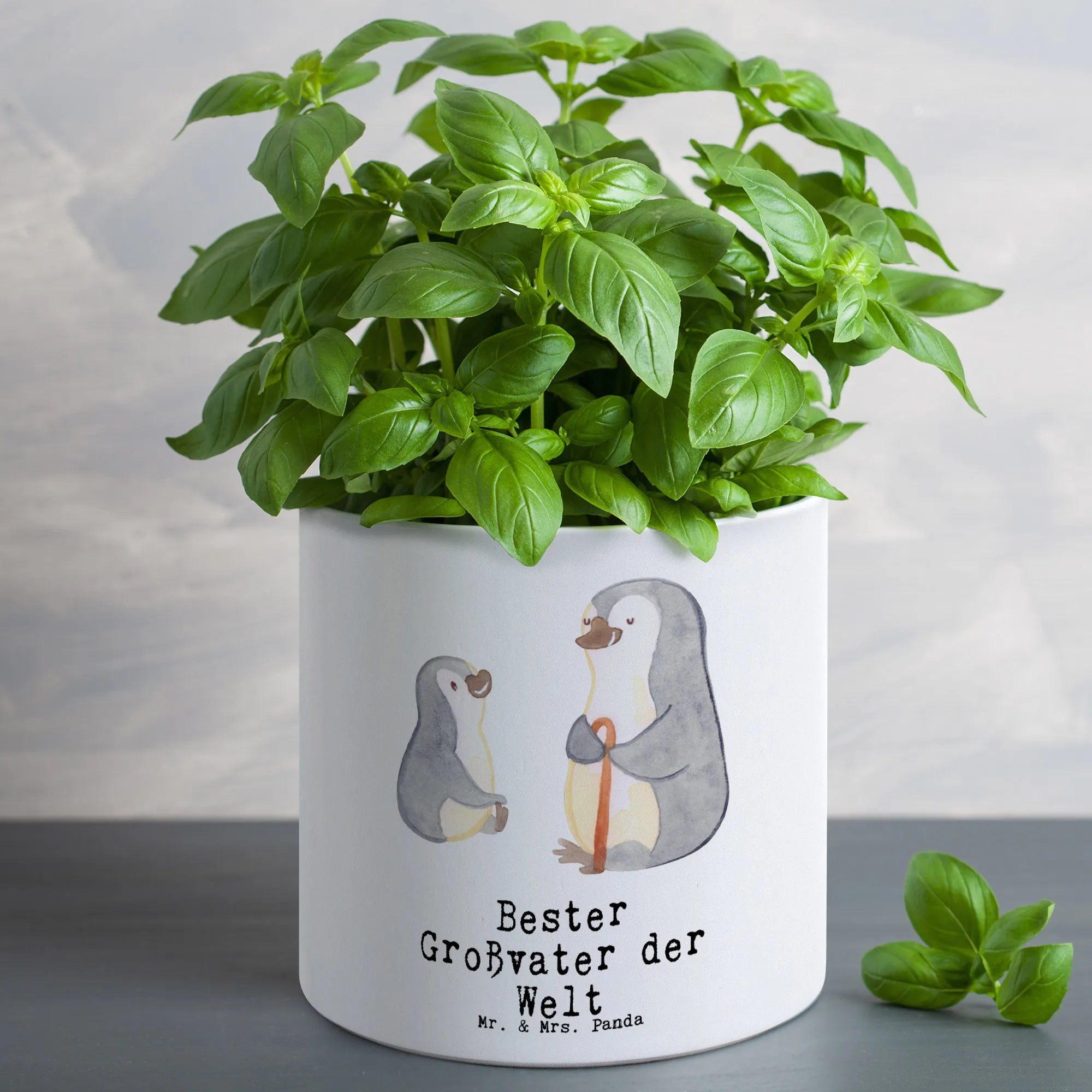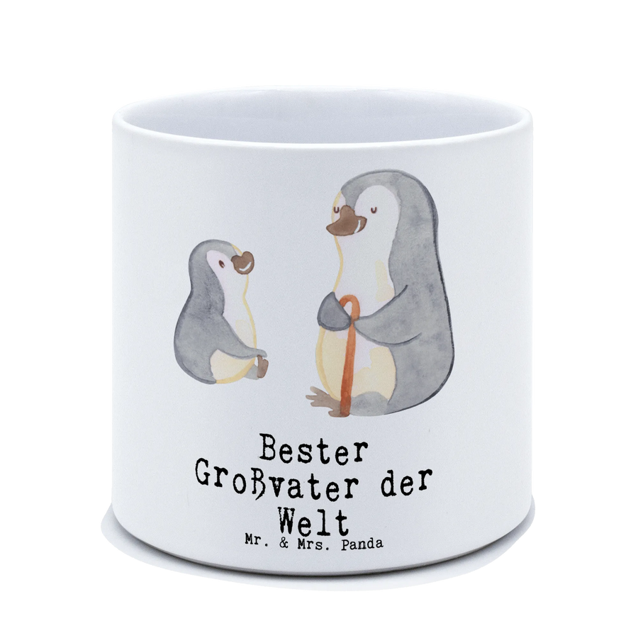 Der XL Blumentopf mit dem süßen Pinguin-Motiv "Bester Großvater der Welt" von Mr. & Mrs. Panda ist das perfekte Geschenk für alle großartigen Opis da draußen! Egal, ob du ein Dankeschön für deinen Großvater, ein Geschenk zum Geburtstag oder einfach nur eine kleine Freude zwischendurch suchst, dieser Pflanztopf wird garantiert ein Lächeln auf sein Gesicht zaubern.