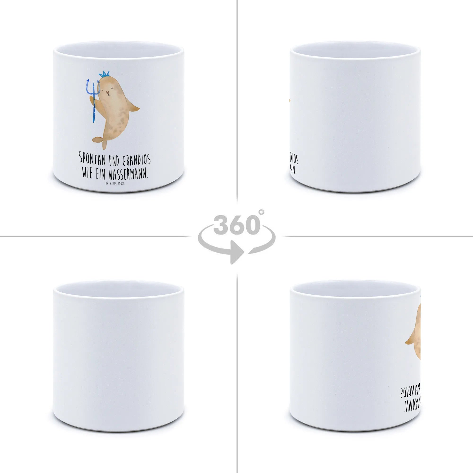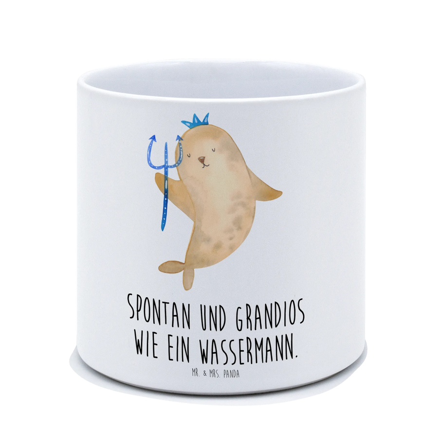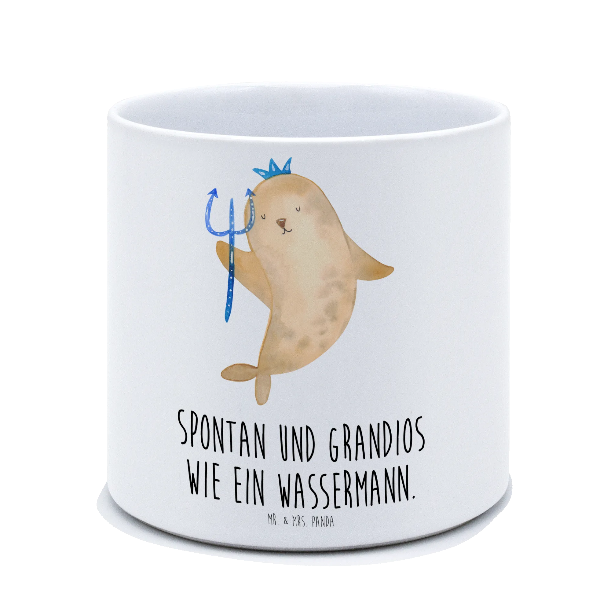 Der XL Blumentopf Sternzeichen Wassermann von Mr. & Mrs. Panda ist das perfekte Geschenk für alle, die im Januar und Februar geboren sind. Mit einem charmanten Design zeigt dieser blühende Begleiter das Wassermann-Sternzeichen und den Spruch "Spontan und grandios wie ein Wassermann."