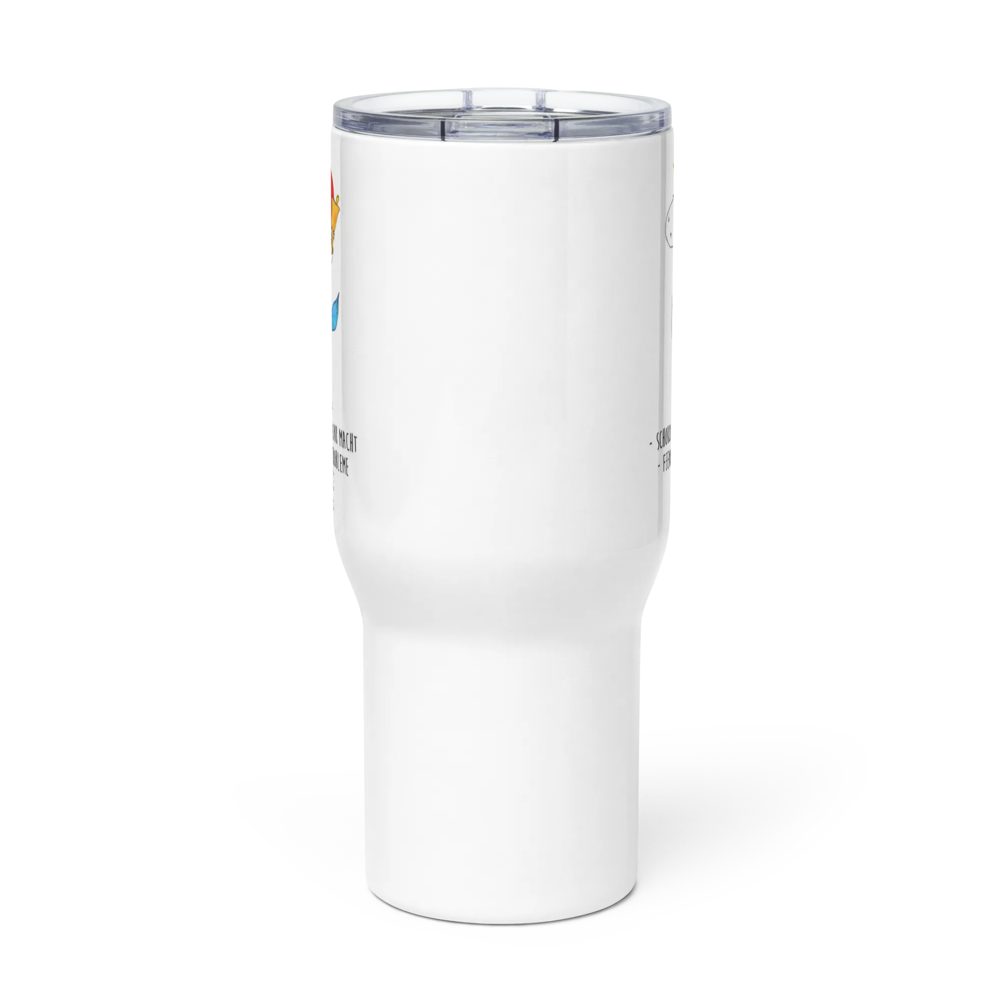 Genieße deinen heißen Kaffee oder deinen kühlen Smoothie in unserem wunderschönen XXL Thermobecher von Mr. & Mrs. Panda! Dieser Becher ist nicht nur ein echter Hingucker mit seinen einzigartigen Motiven und Sprüchen, sondern auch äußerst funktional. Gefertigt aus hochwertigem Edelstahl, bietet er ein Fassungsvermögen von bis zu 740 ml für dein Lieblingsgetränk. Seine Isolierung hält heiße Getränke bis zu 6 Stunden heiß und kalte Getränke bis zu 8 Stunden kalt! Egal, ob du auf dem Weg zur Arbeit bist oder einen Ausflug unternimmst, dieser Thermobecher passt in die meisten Autotassenhalter und ist mit einem auslaufsicheren Kunststoffdeckel ausgestattet. Perfekt zum Genießen oder als Geschenk für Freunde! Lass dich von Drinnen nach Draußen begleiten und nimm deinen Stil mit diesem tollen Trinkgefäß überallhin mit.