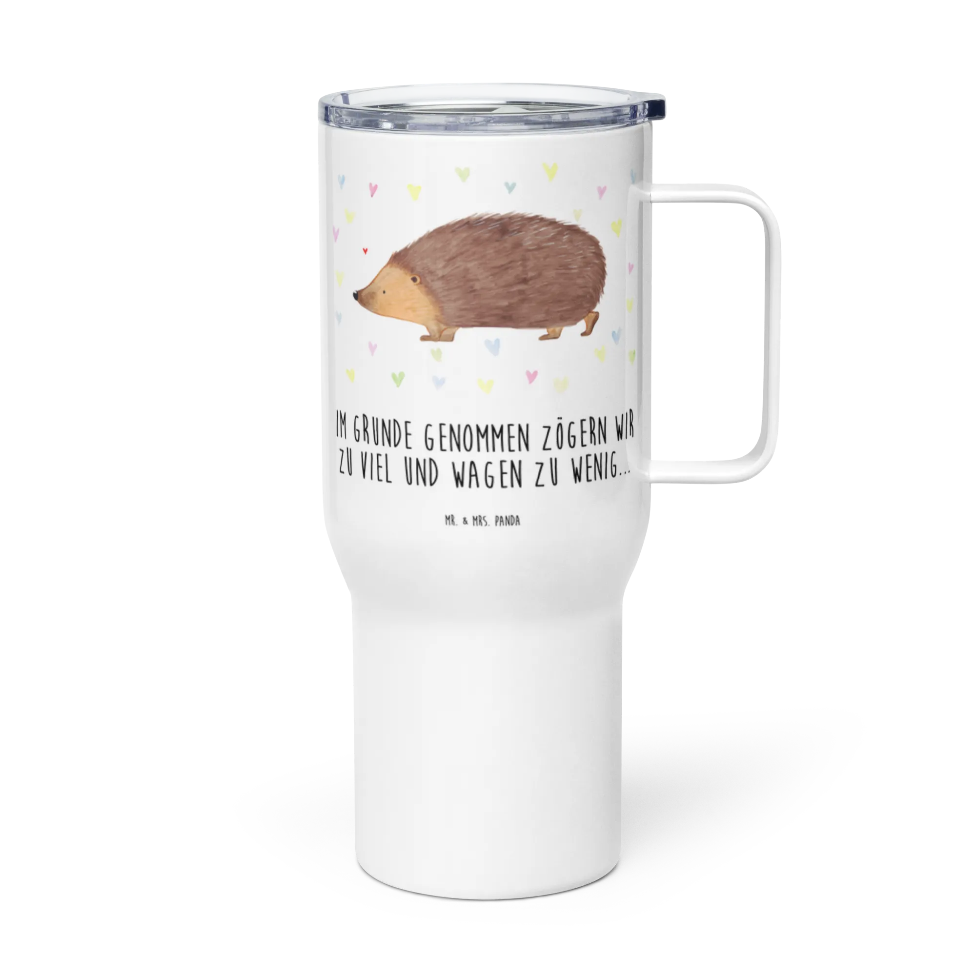 Dein neuer bester Freund für die Reise – der XXL Thermobecher mit dem zauberhaften Igel Herzen-Motiv aus der Small World Kollektion von Mr. & Mrs. Panda!